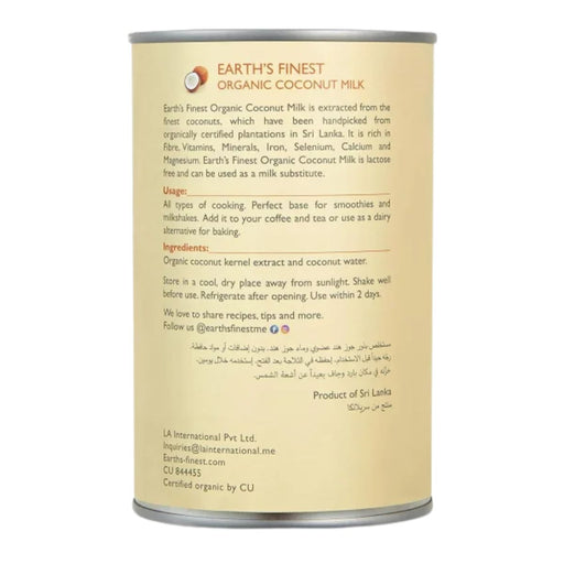 Earth's Finest Organic Coconut Milk, Sri Lanka - 400ML